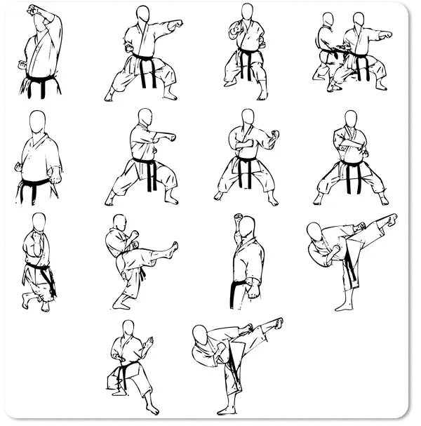 Application dans les Katas : Une fois les Kihons maîtrisés, ils sont intégrés dans les Katas (formes), qui sont des enchaînements de techniques. Ces formes permettent d'appliquer les techniques dans un contexte plus dynamique.