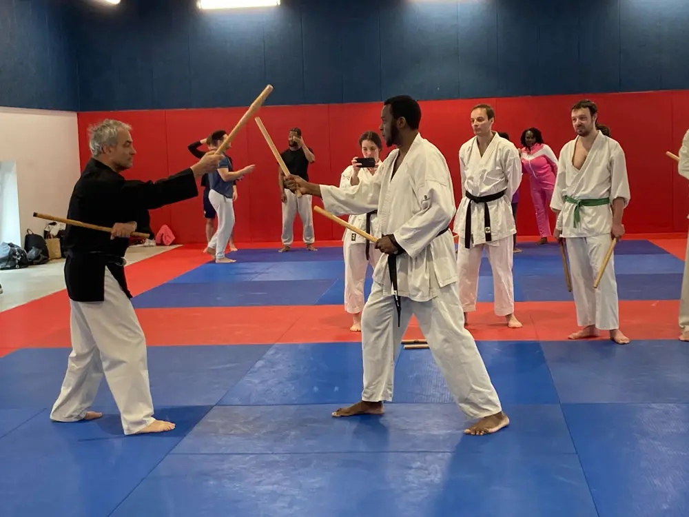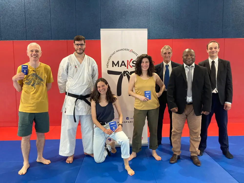 Enfin, tout récemment et toujours dans notre cher quartier de Ménilmontant, se présenta au bout du passage Monplaisir l’opportunité d’intégrer la structure dite " des Amandiers " édifiée peu auparavant par la Mairie de Paris : au premier étage du bâtiment, nous bénéficions d’un remarquable dojo de karaté qui revalorise toute notre pratique dans un vaste espace propice au travail des katas et au développement des amples techniques qui caractérisent notre style.